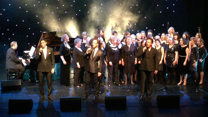 We had a brilliant night sharing the stage with Tenors Unlimited at The Brindley Theatre, Runcorn after being chosen by them to be their guest choir. We sang four songs with them, You Raise Me Up, Time To Say Goodbye, Nessun Dorma and Brand New Day an original song written by them. We also showcased one of our own songs, I Don't Feel Like Dancing.